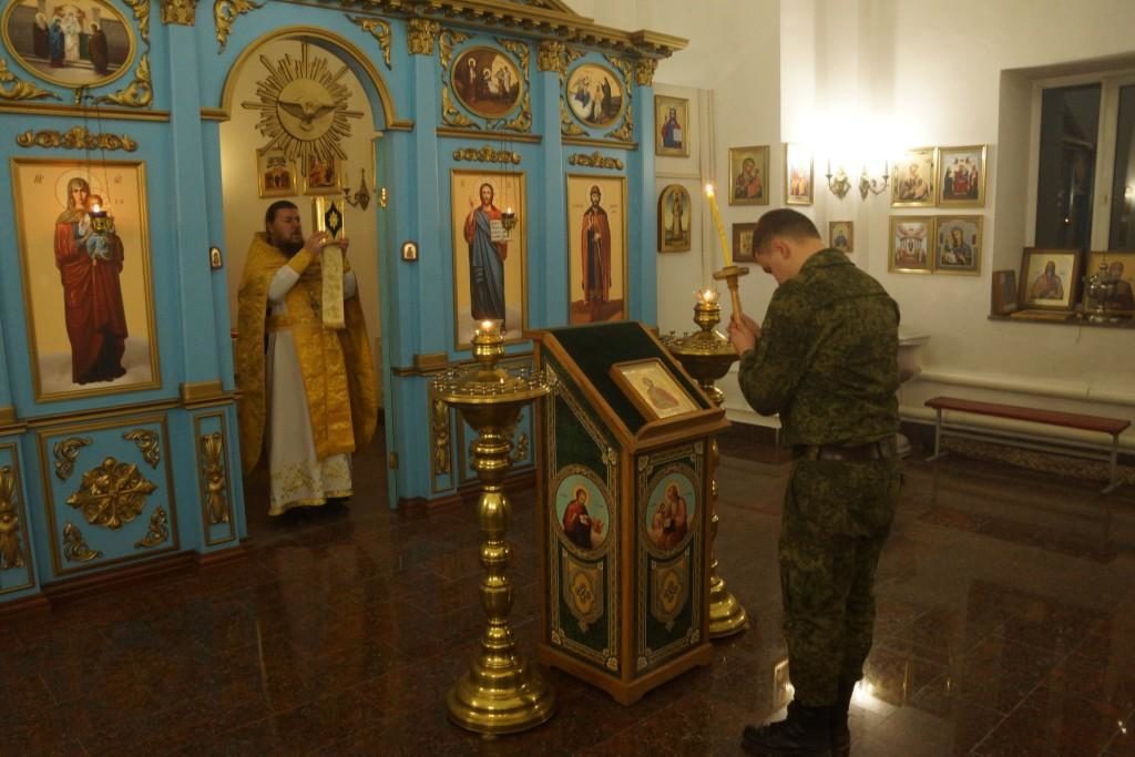 В храме в честь святого благоверного великого князя Димитрия Донского, расположенном на территории группировки, священнослужитель совершил Божественную литургию.