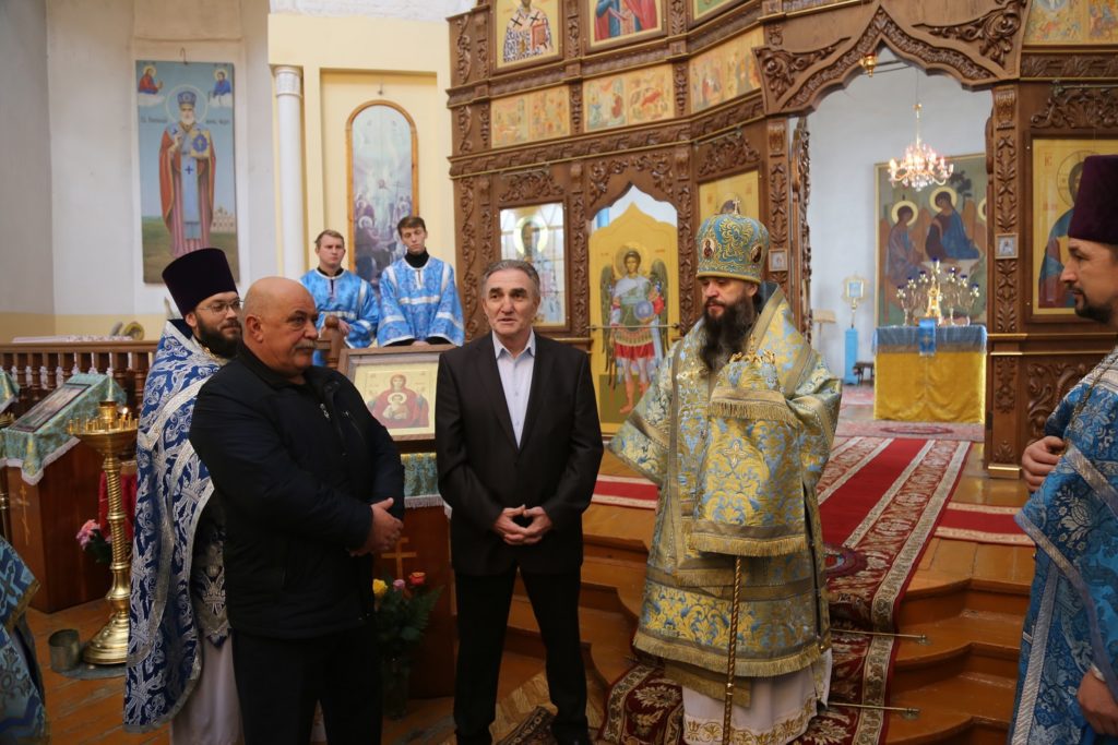 Поздравить владыку и православных земляков в праздничный день пришли также первый заместитель главы администрации г. Хасавюрта Бадыр Ахмедов и председатель Русской общины г. Хасавюрта Геннадий Авраимов.