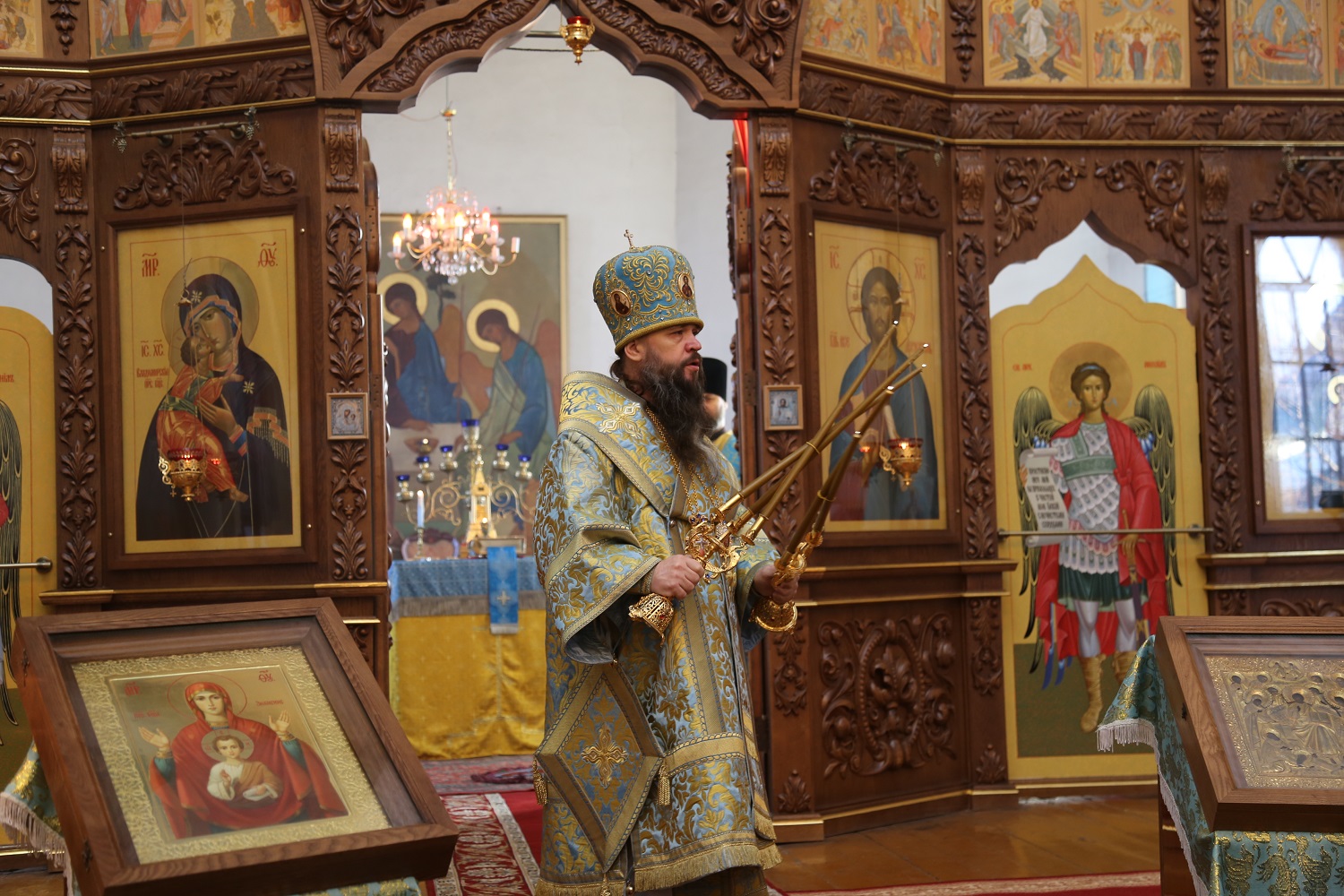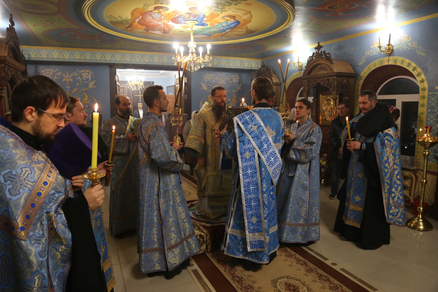Накануне вечером иерарх совершил всенощное бдение в храме Казанской иконы Божией Матери г. Каспийска.