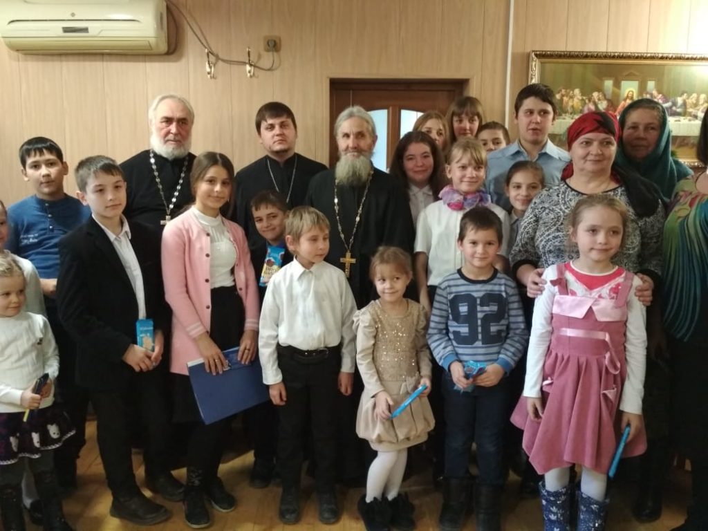 По окончании выступления со словами поздравлений и благодарности выступил благочинный Кизлярского церковного округа, настоятель Никольского храма иерей Павел Каликин, после чего вручил ребятам сладкие подарки.