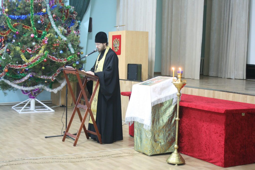 Перед началом встречи священнослужитель совершил молебное пение на новолетие.