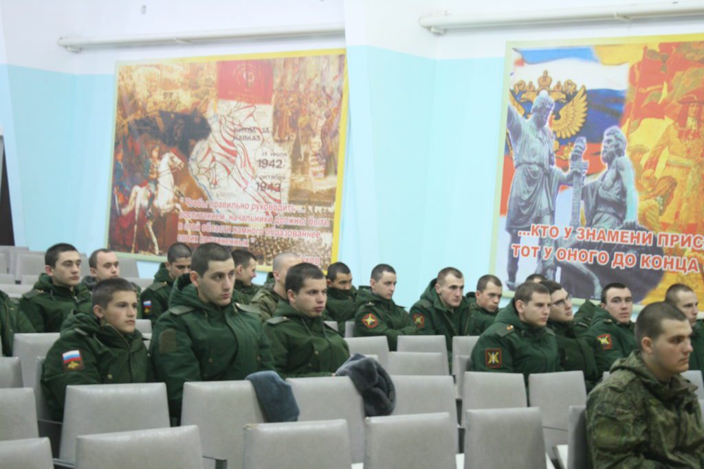 Далее в Культурно-досуговом центре войсковой части состоялась беседа отца Андрея с личным составом на тему «Защита Отечества — священный долг».