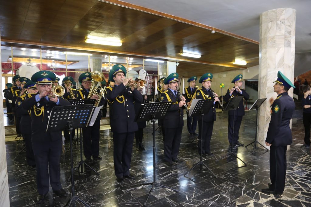 Перед началом мероприятия в фойе театра гостей встречали исполнением национальных песен хор русской песни «Волна», образцовый детский фольклорный ансамбль «Лукоморье» и духовой оркестр Управления ФСБ РФ по РД.