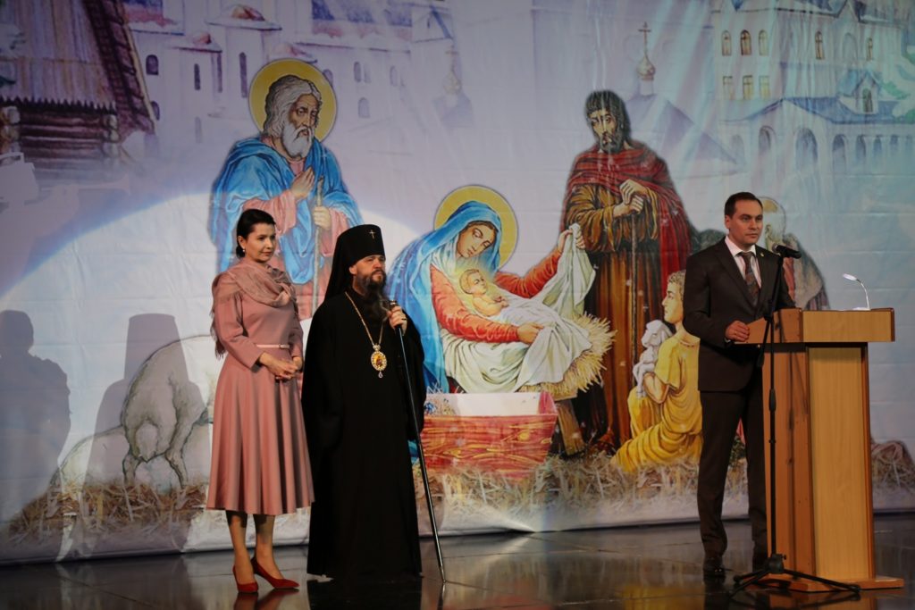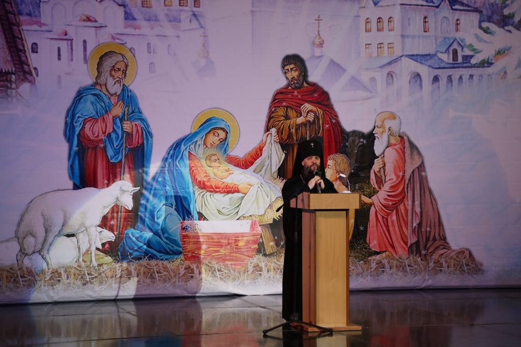 «Поздравляю всех вас с Рождеством Христовым и наступившим 2019 годом! Сейчас воспитанники воскресных школ рассказали нам о смысле праздника Рождества Христова. Бог настолько возлюбил нас, людей, что пришел на землю и воплотился через Деву Марию. В Иисусе Христе Божество соединилось с человеческим естеством — это и есть та великая тайна, которую никто из людей не способен до конца понять, но именно она делает нас причастниками Вечности. Господь открывает нам, что любит всех людей вне зависимости от национальности и вероисповедания. И все мы должны научиться любить своего Творца и осознать, что земная жизнь дана для того, чтобы творить дела любви — любить и уважать родителей, преподавателей, друзей. Именно этого ждет от нас Господь.