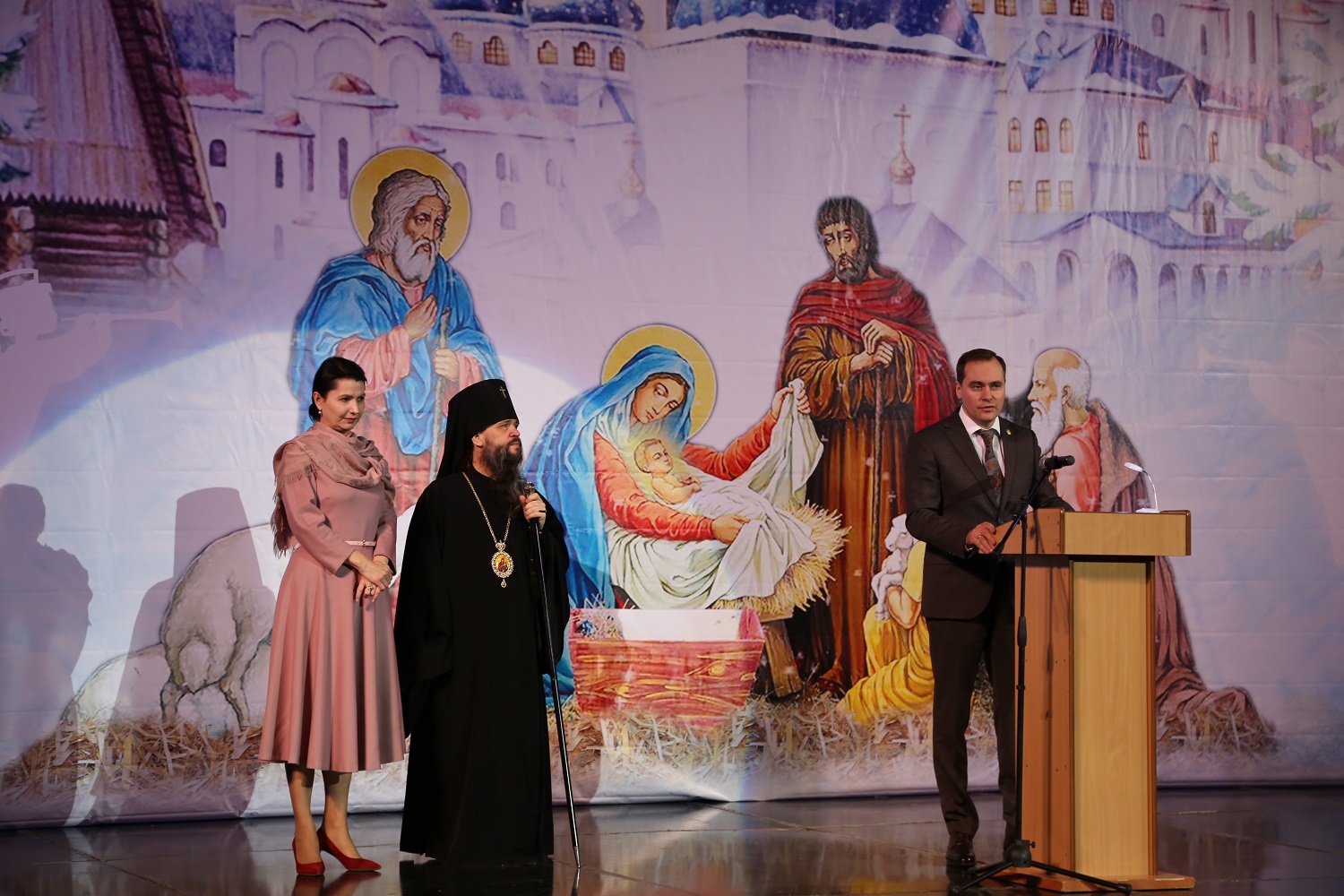 «Поздравляю всех вас с Рождеством Христовым и наступившим 2019 годом! Сейчас воспитанники воскресных школ рассказали нам о смысле праздника Рождества Христова. Бог настолько возлюбил нас, людей, что пришел на землю и воплотился через Деву Марию. В Иисусе Христе Божество соединилось с человеческим естеством — это и есть та великая тайна, которую никто из людей не способен до конца понять, но именно она делает нас причастниками Вечности. Господь открывает нам, что любит всех людей вне зависимости от национальности и вероисповедания. И все мы должны научиться любить своего Творца и осознать, что земная жизнь дана для того, чтобы творить дела любви — любить и уважать родителей, преподавателей, друзей. Именно этого ждет от нас Господь.