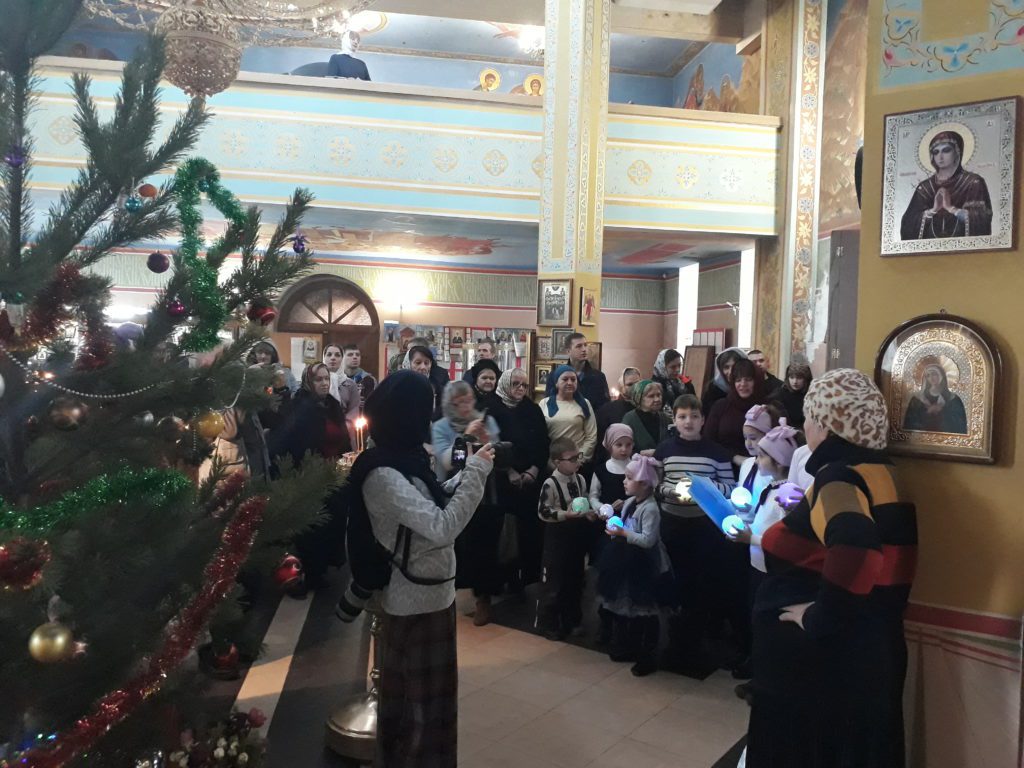 Ребята выступили перед прихожанами: исполнили колядки и песнопения, приуроченные к празднику Рождества Христова.