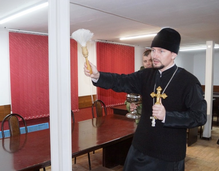 Священнослужитель освятил помещение штаба войсковой части.