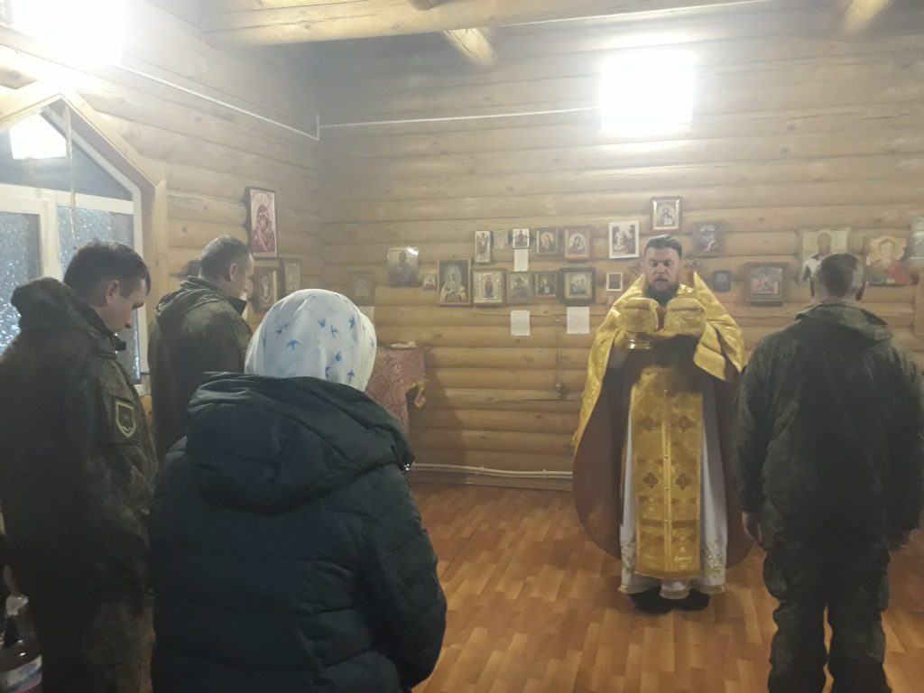 В часовне на территории части священнослужитель совершил Божественную литургию, за которой военнослужащие смогли принять Святых Христовых Таин.