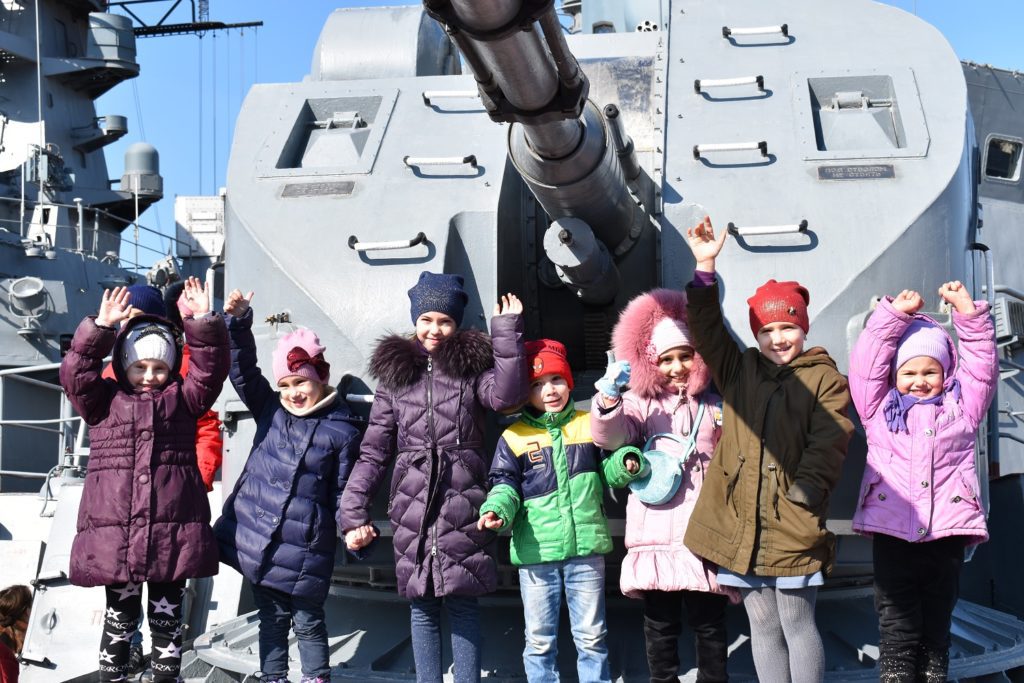 Ребята с удовольствием осмотрели порт с его многочисленными причалами, а кульминацией экскурсии стало посещение военного корабля, где экскурсантам было подробно рассказано о военном оснащении корабля, его мощности и предназначении.