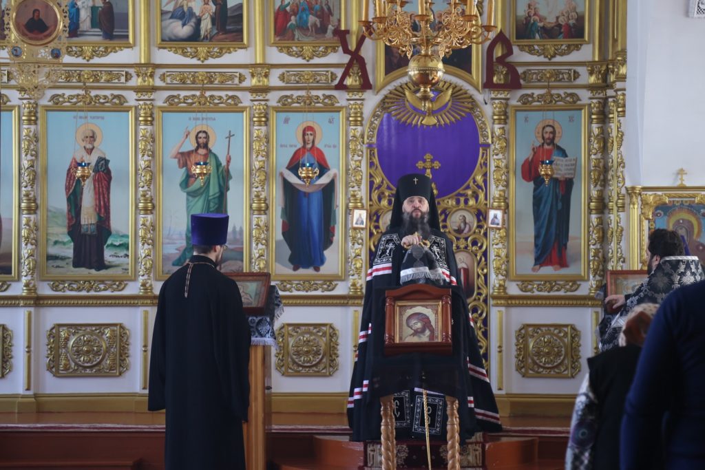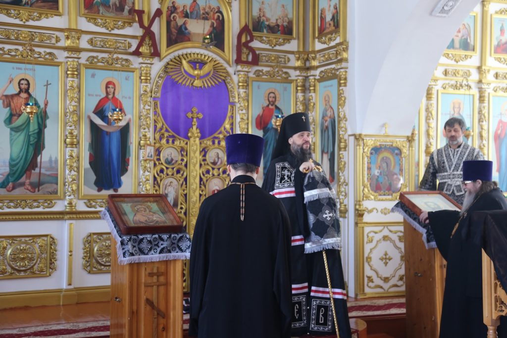 По окончании литии владыка Варлаам преклонив колени, вознес молитву на начало Святой Четыредесятницы.