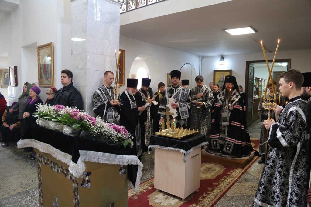 По окончании великопостной утрени и 1-го часа была совершена заупокойная лития.