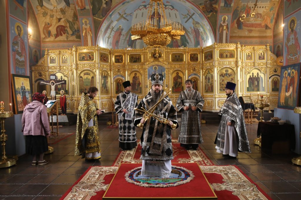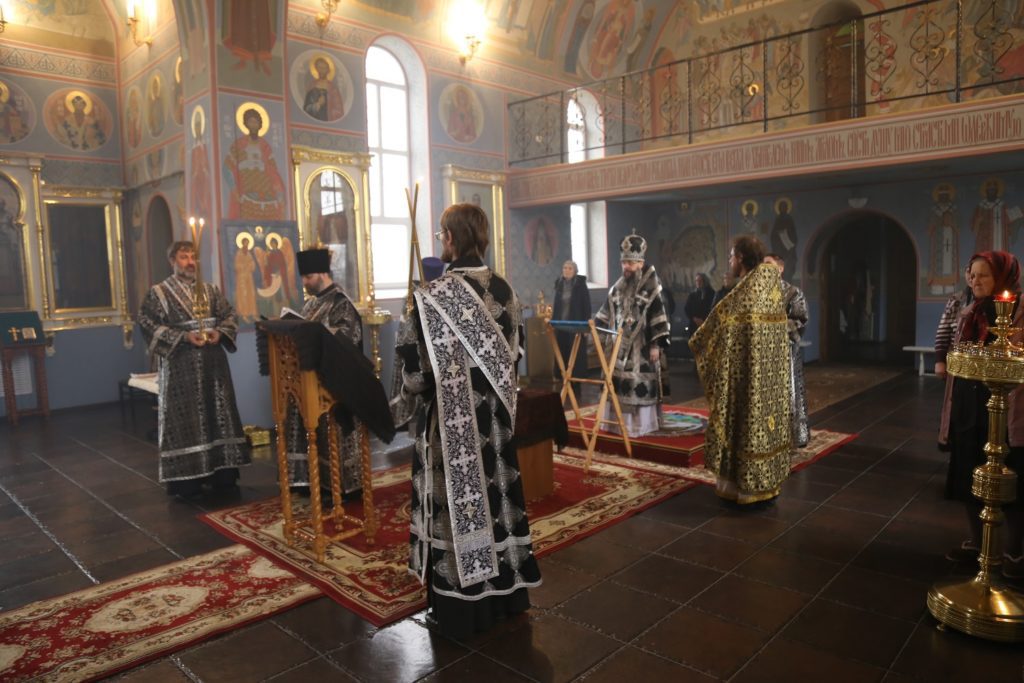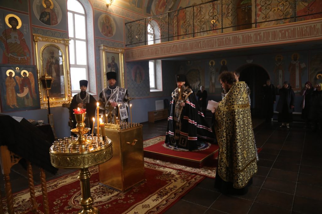 По окончании великопостной утрени и 1-го часа была совершена заупокойная лития, после которой, преклонив колени, иерарх вознес молитву на начало Святой Четыредесятницы.