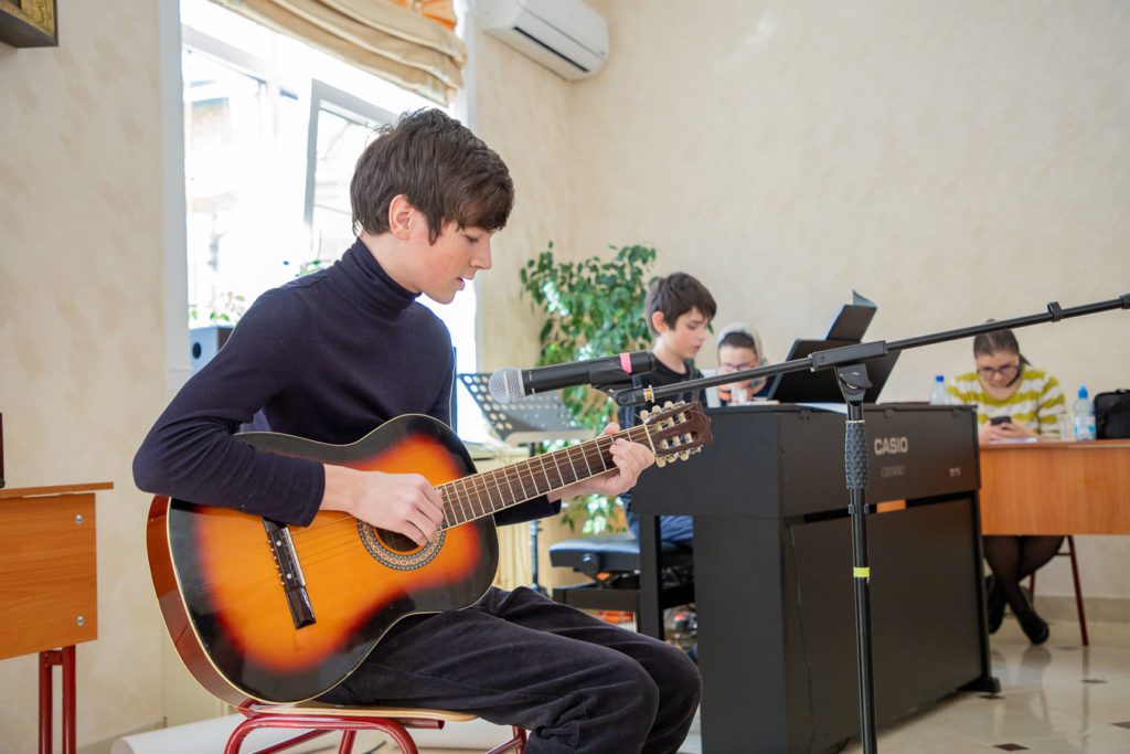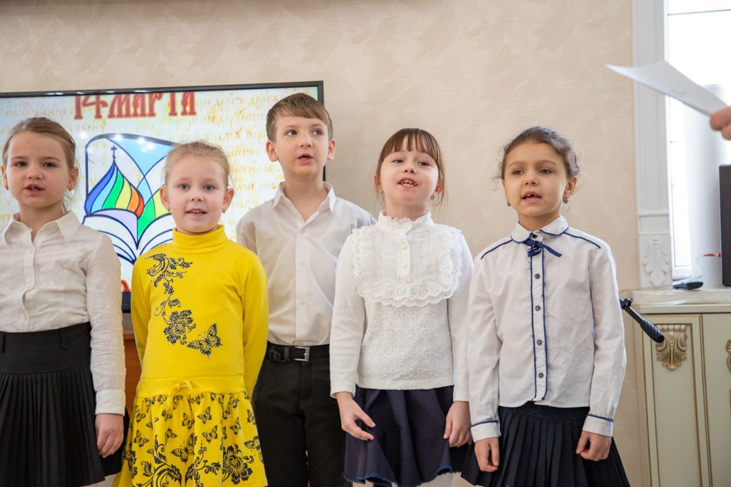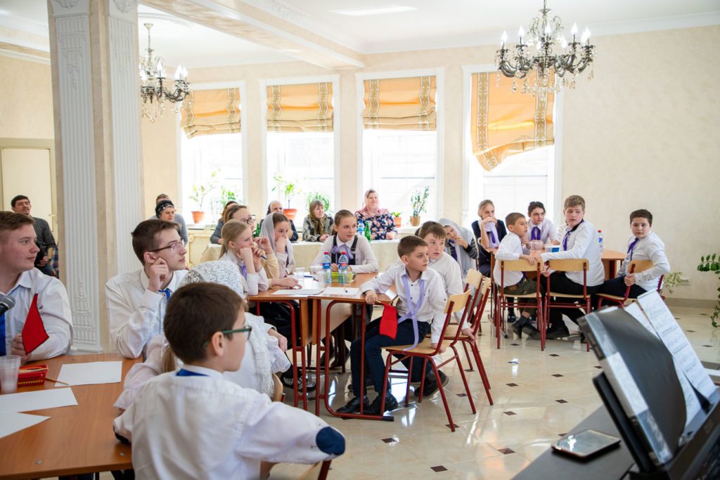 В перерывах между турами воспитанники воскресной школы «Преображение» выступали с музыкальными номерами.