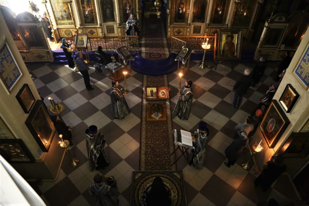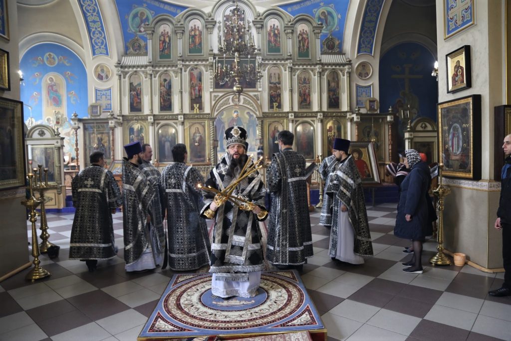 Накануне вечером в кафедральном храме епархиальный архиерей совершил утреню Четвертка Великого канона с чтением Великого покаянного канона преподобного Андрея Критского и жития преподобной Марии Египетской («Мариино стояние»).