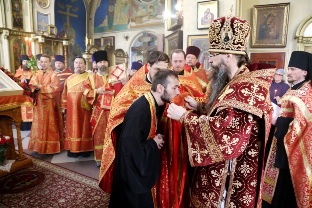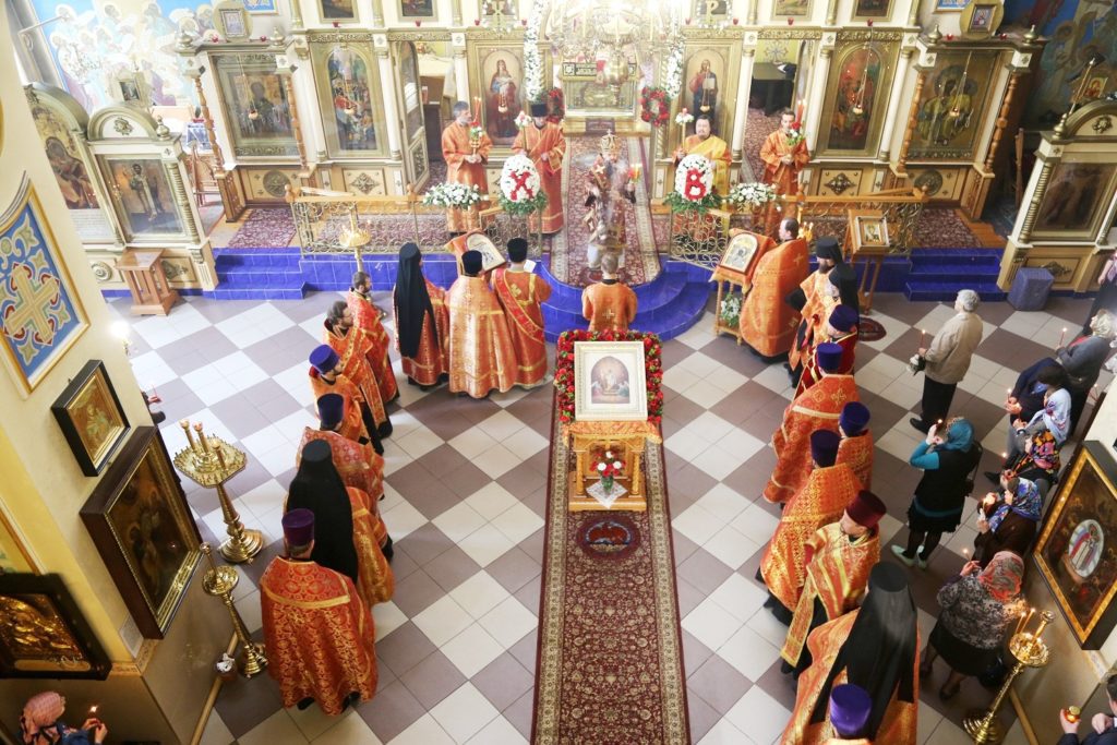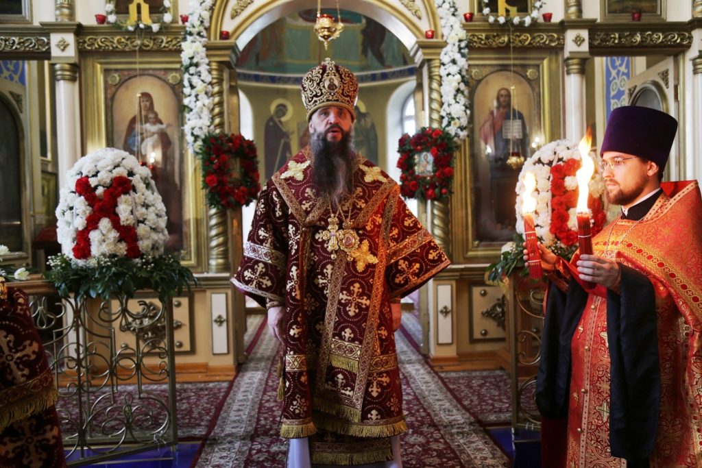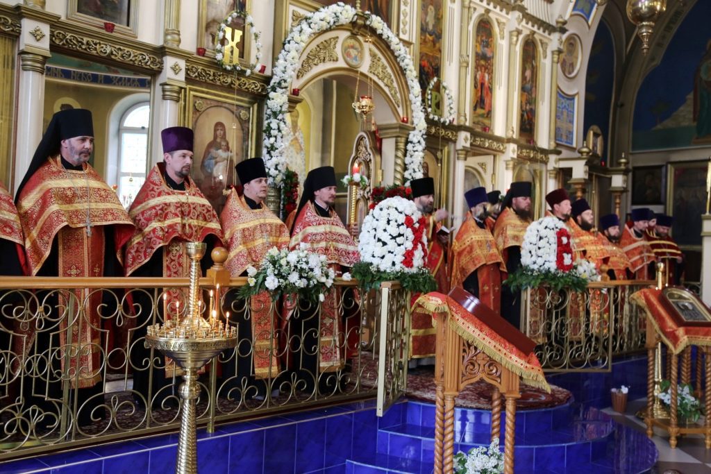 Его Высокопреосвященству сослужили секретарь епархии иерей Виталий Тарасов, отцы благочинные, настоятели храмов, штатные клирики епархии.