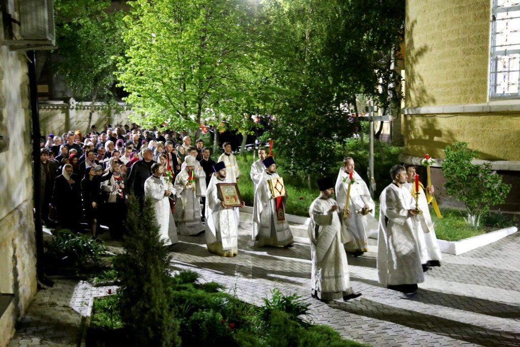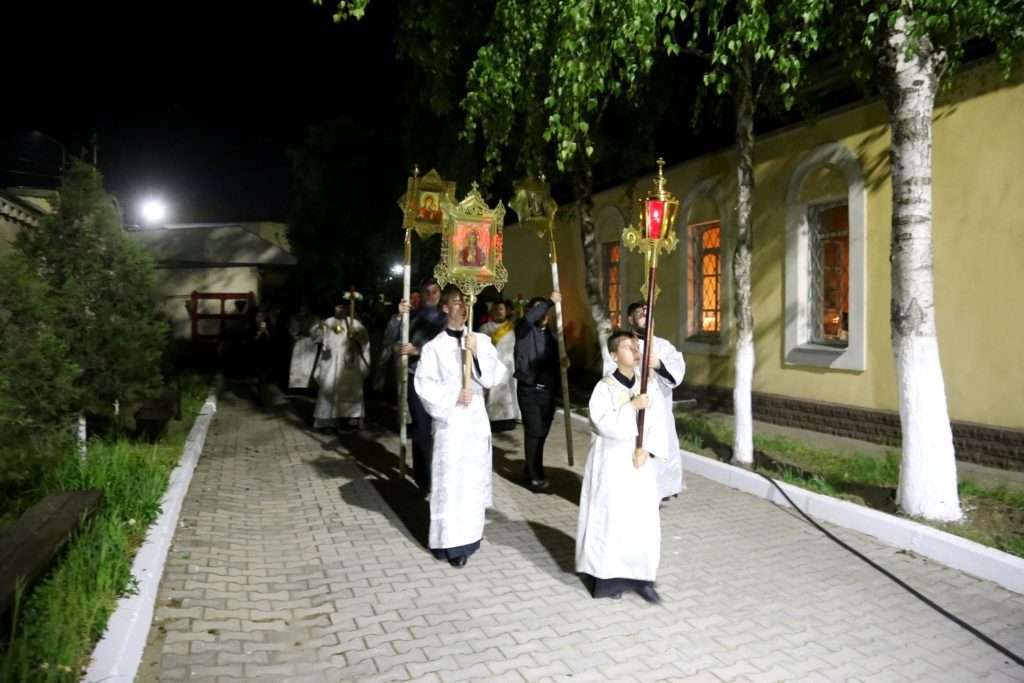 В полночь при пении стихиры «Воскресение Твое, Христе Спасе…» состоялся крестный ход вокруг собора.