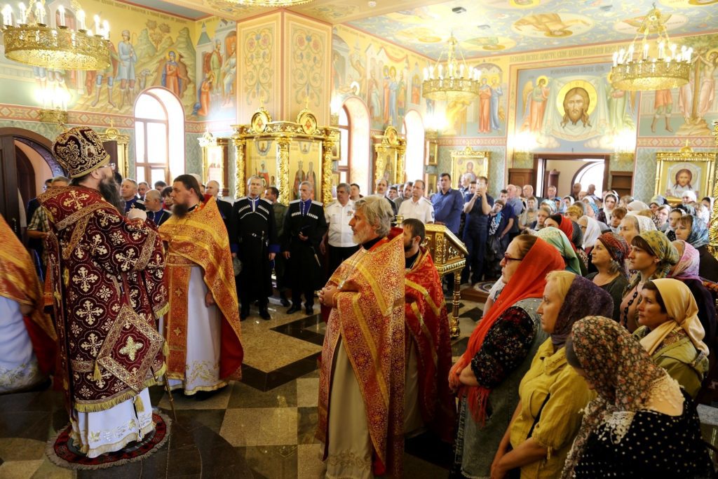 Владыка Варлаам призвал прихожан нового станичного храма молиться за Тимофея Кургина и поблагодарил благотворителя за возведение великолепного дома Божия.