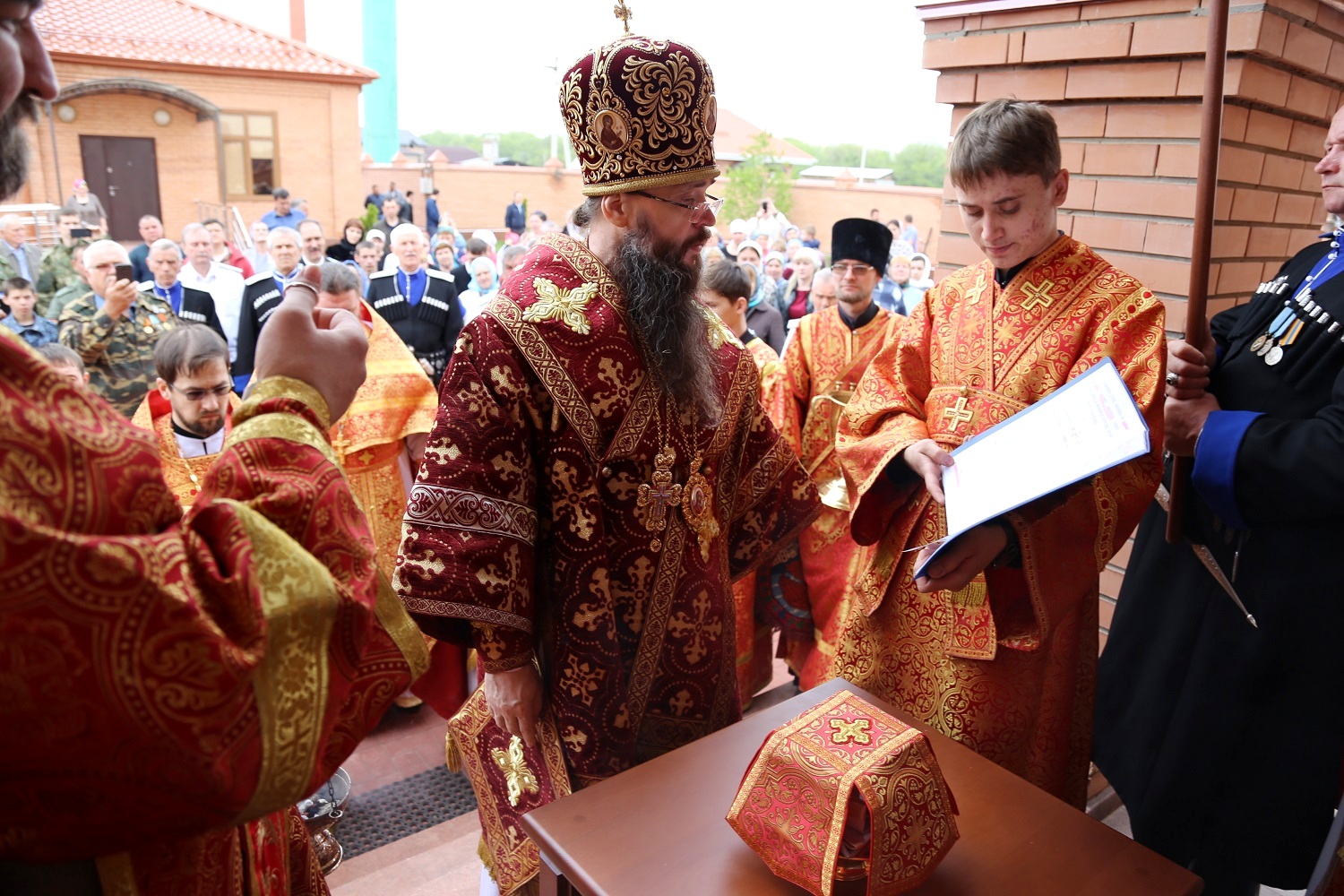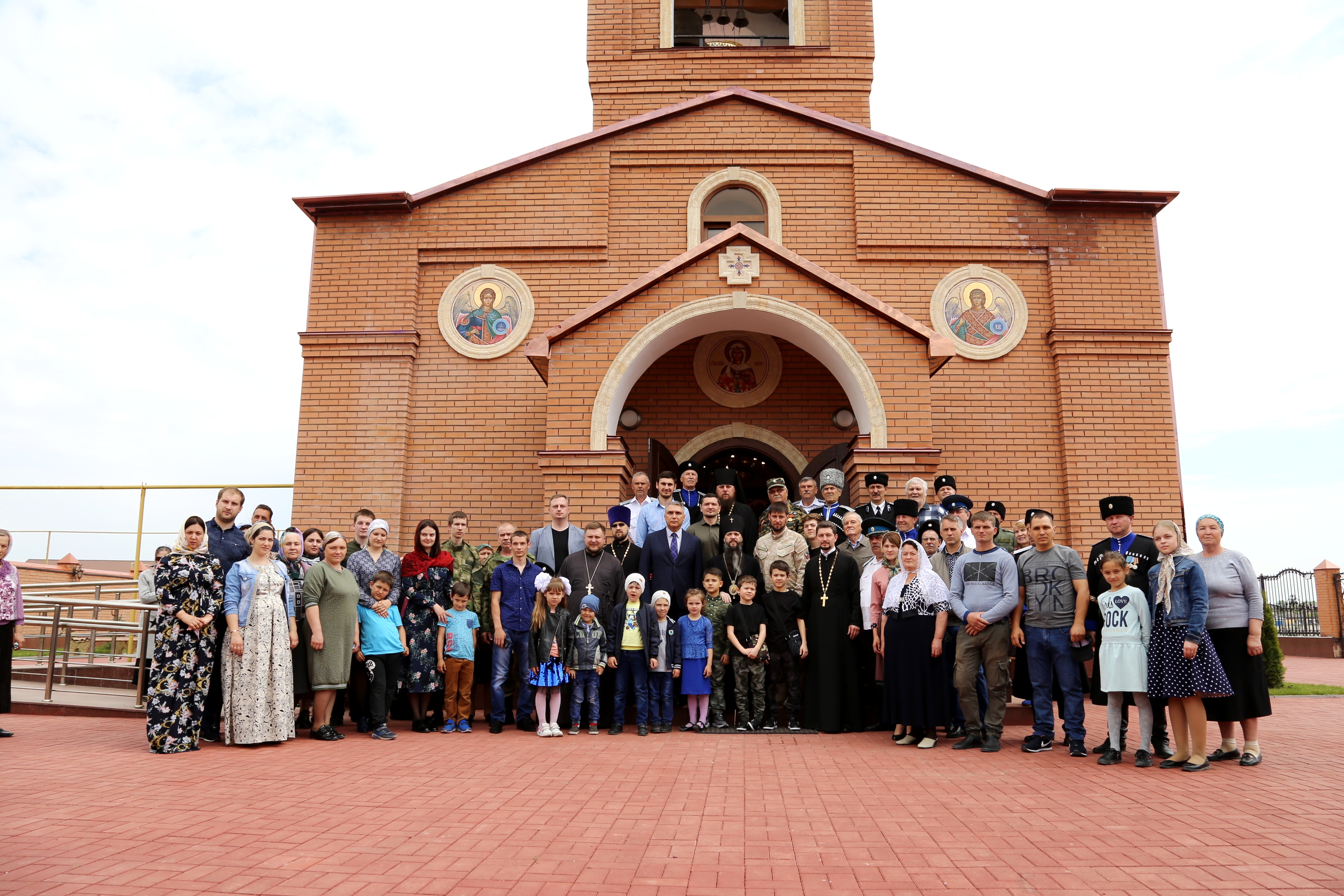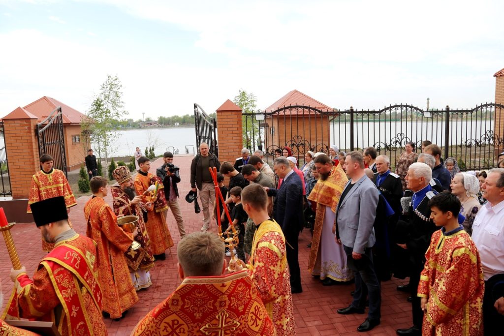 В свою очередь Тимофей Кургин поблагодарил всех, кто принимал участие в строительстве храма, и поздравил жителей станицы с долгожданным освящением нового храма. Меценат рассказал, что имеет казачьи корни и поэтому неравнодушен к Кавказу.