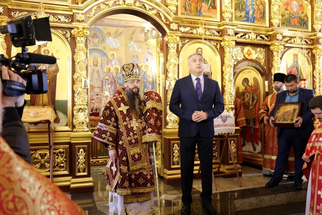 После чина освящения архипастырь возглавил первую в стенах нового храма Божественную литургию.