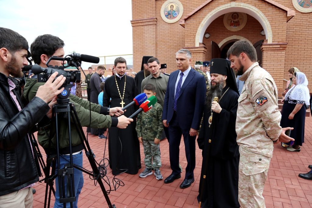На богослужении присутствовали полномочный представитель Президента РФ в СКФО Александр Матовников, помощник Главы ЧР, первый заместитель начальника управления Росгвардии по ЧР Даниил Мартынов, президент Национальной ассоциации лесопромышленников меценат Тимофей Кургин, станичный атаман, представители казачества, а также верующие из г. Грозного и станиц Чеченской Республики.