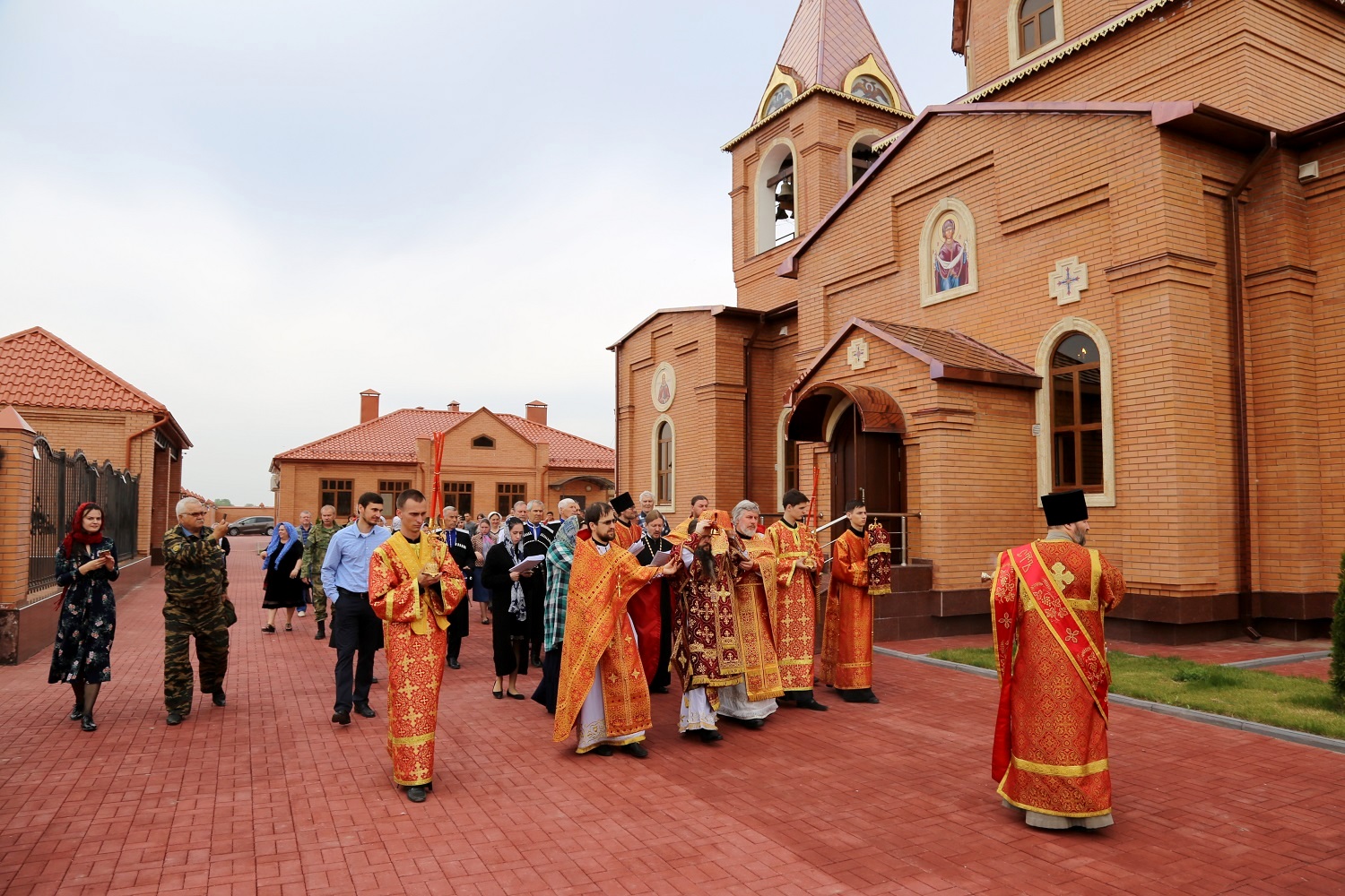 По заамвонной молитве состоялся пасхальный крестный ход вокруг новоосвященного храма.