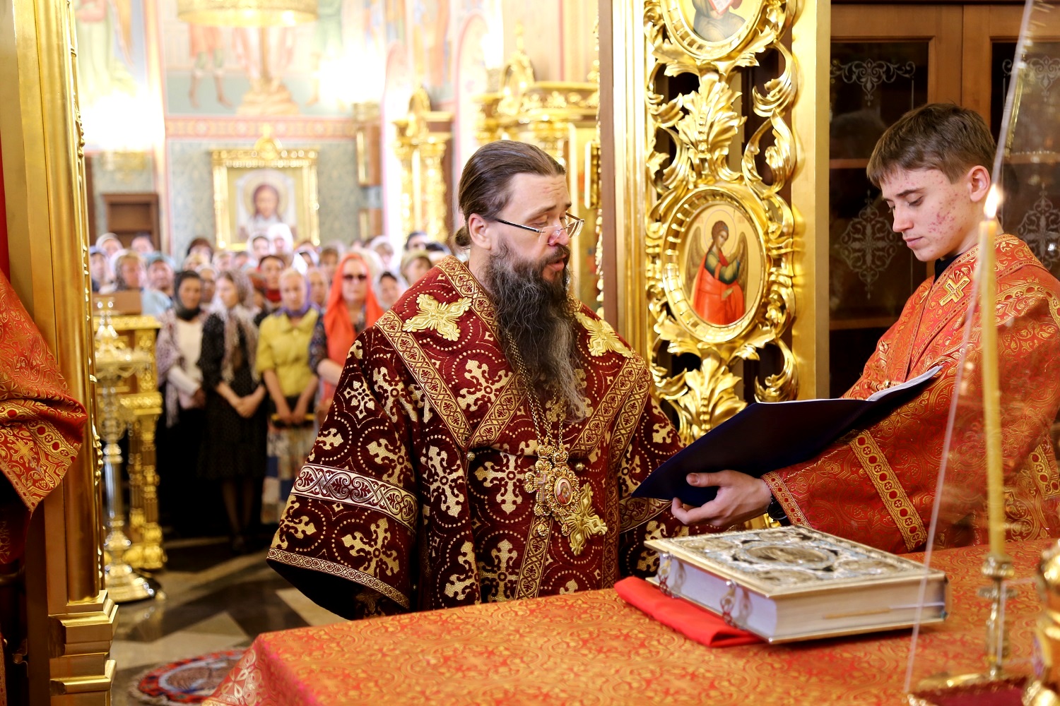 В дар новоосвященному храму иерарх передал Священное Писание Нового Завета.