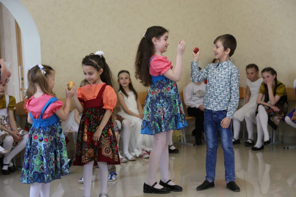 В свою очередь ребята исполнили для гостей пасхальные стихи и песнопения, а также продемонстрировали танцевальные номера.