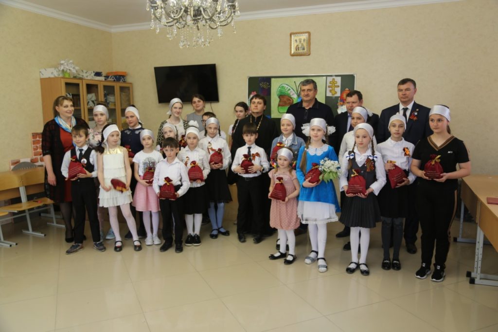 Алексей Гасанов зачитал поздравительный адрес от полномочного представителя Президента РФ в СКФО Александра Матовникова, после чего вручил воспитанникам воскресной школы пасхальные сувениры.