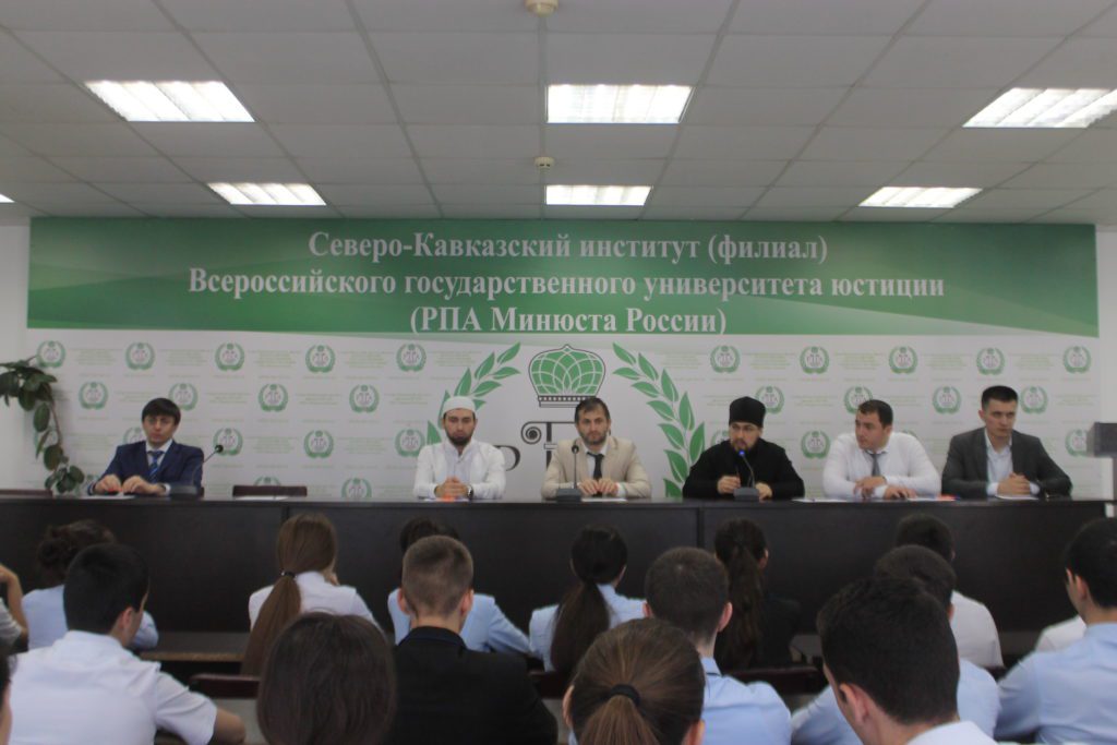 31 мая 2019 года в Северо-Кавказском институте (филиал) ВГУЮ (РПА Минюста России) в г. Махачкале прошла встреча со студентами образовательного учреждения, посвященная межконфессиональному миру и согласию в Дагестане.