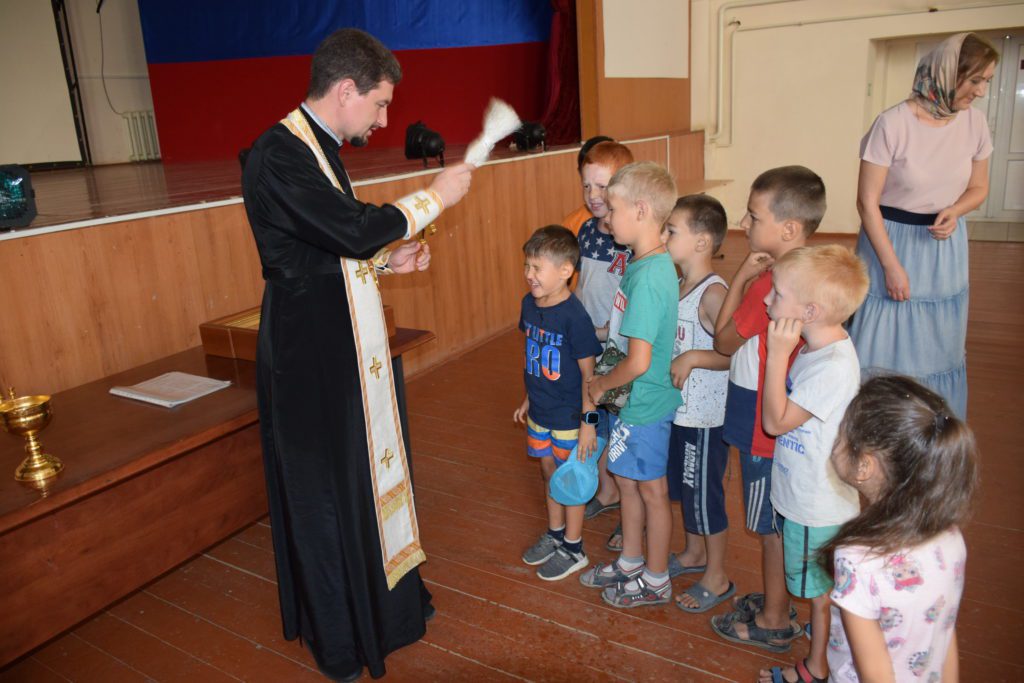 Священнослужитель совершил молебное пение на начало нового учебного года, после чего благословил детей.