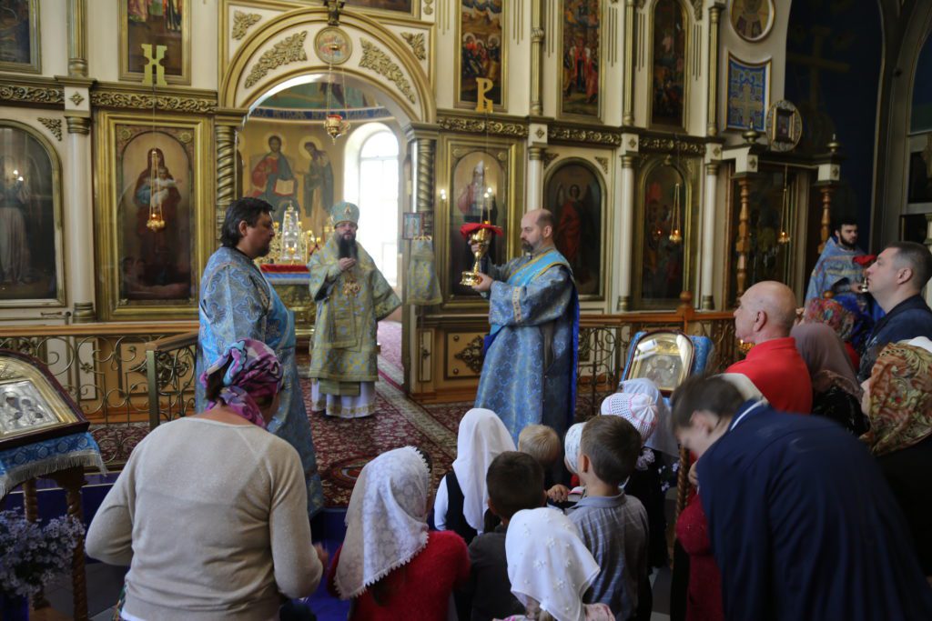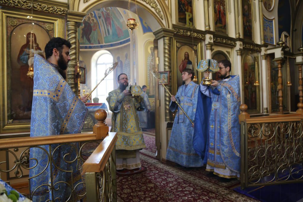По заамвонной молитве было совершено славление, вознесена молитва ко Пресвятой Владычице нашей Богородице и Приснодеве Марии и пропето величание.