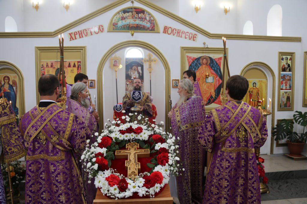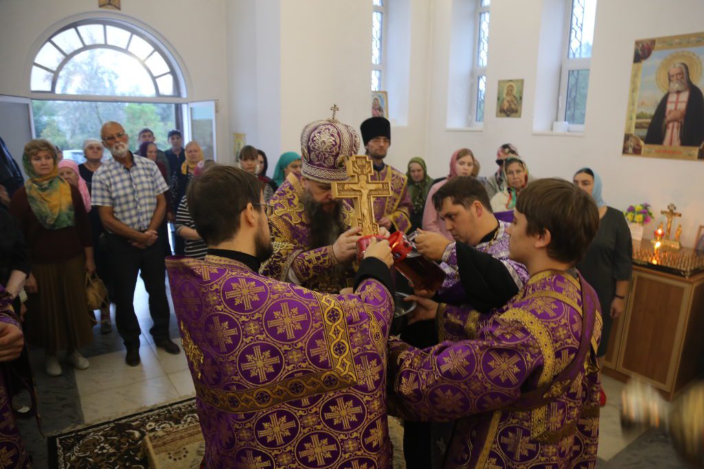 По прочтении Евангелия владыка Варлаам обратился к духовенству и мирянам с архипастырским словом, владыка поздравил их с престольным праздником — с днем Воздвижения Честного и Животворящего Креста Господня.