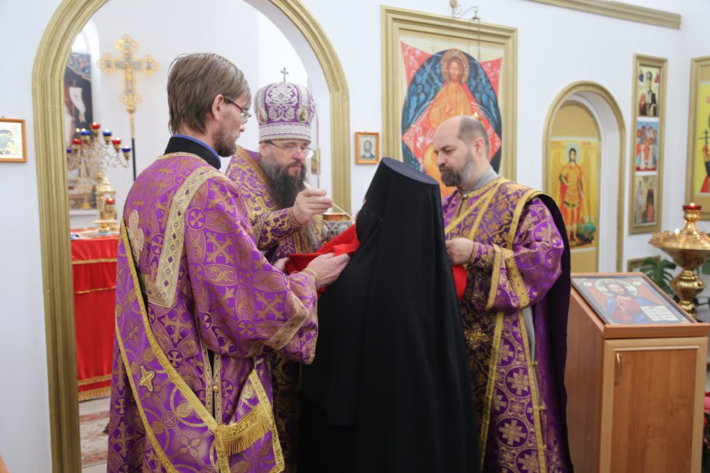 Накануне вечером правящий архиерей совершил в монастырском храме всенощное бдение, за которым после великого славословия совершил чин Воздвижения Креста.