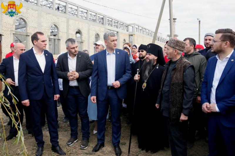 400 представителей трех основных религиозных общин Дагестана посадили 200 саженцев на территории строящегося исламского духовного-просветительского центра в Махачкале.