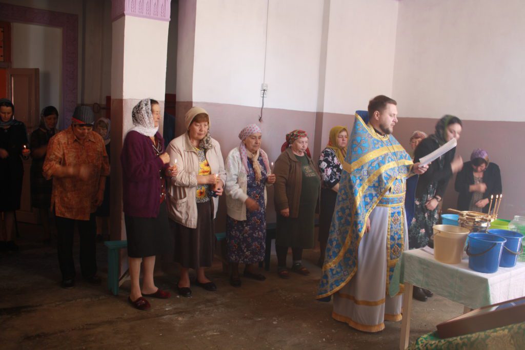 Так как храма в селе Раздолье еще нет, по благословению архиепископа Махачкалинского и Грозненского Варлаама настоятель храма Рождества Пресвятой Богородицы в Таловке иерей Дионисий Степанищев совершил Божественную литургию в фойе Раздольевского Дома культуры.