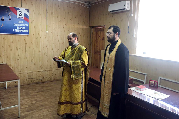 После беседы с осужденными священнослужители совершили молебное пение о заключенных, подследственных, родственниках заключённых, потерпевших и сотрудниках УФСИН.