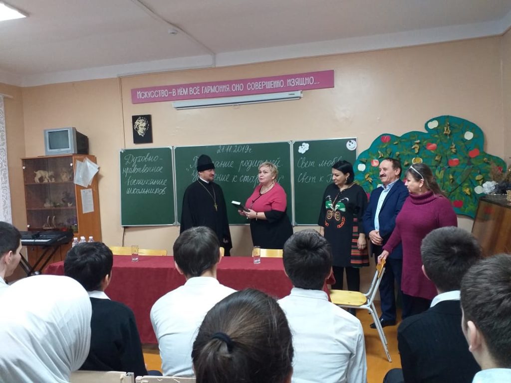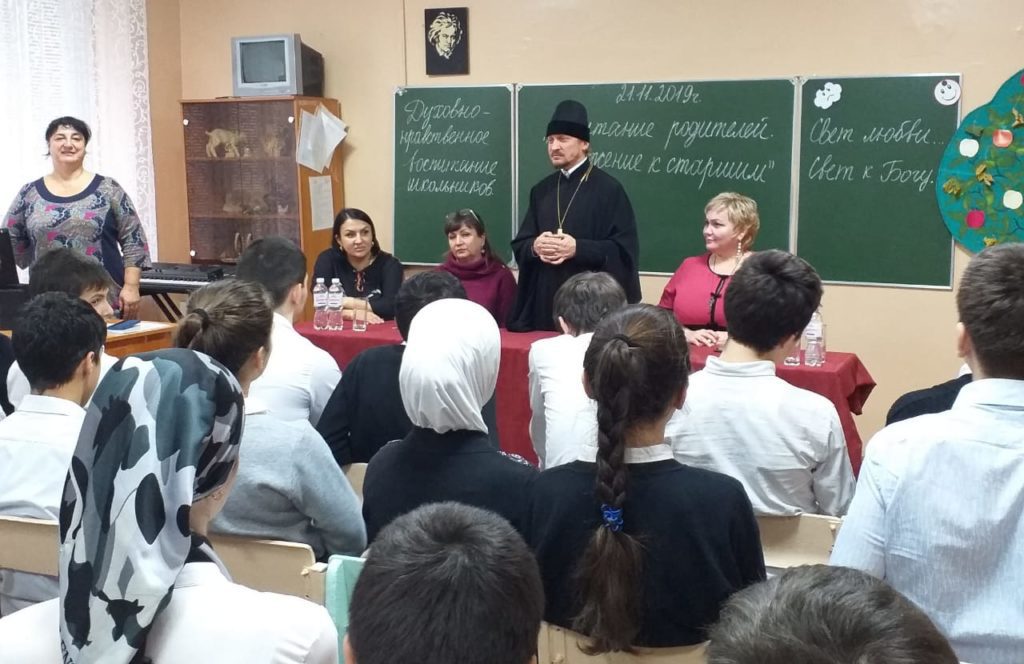 В ходе встречи обсуждались вопросы духовно — нравственного воспитания школьников, почитание родителей и уважение к старшим.