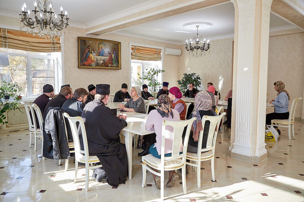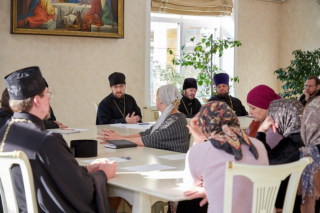 В начале встречи отец Виталий напомнил о первоочередной задаче по формированию максимально благоприятных условий для духовного просвещения детей и подростков на каждом приходе. Были проанализированы результаты анкетирования по религиозно-образовательной и катехизической деятельности приходов епархии. Далее участники совещания обсудили накопившиеся проблемы в деятельности воскресных школ. Отдельно обсуждалась проблематика приходского попечения о детях в сельских храмах.