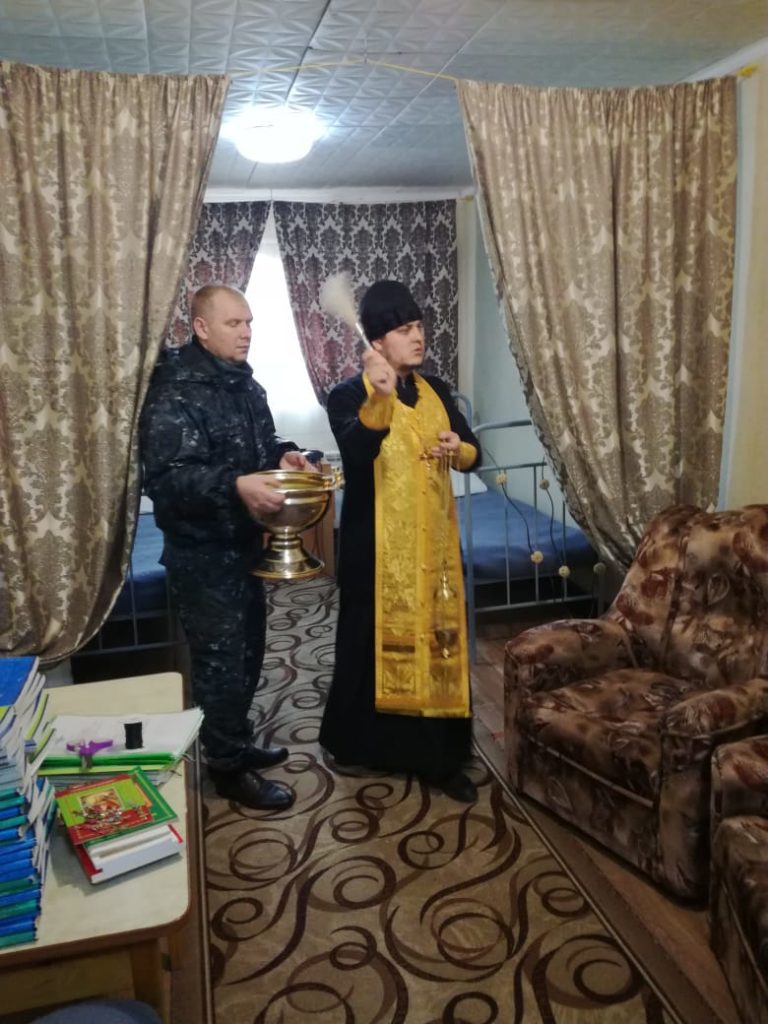 Также отец Павел совершил чин освящения служебных помещений подразделения, после чего священнослужитель совершил для желающих военнослужащих Таинство исповеди.