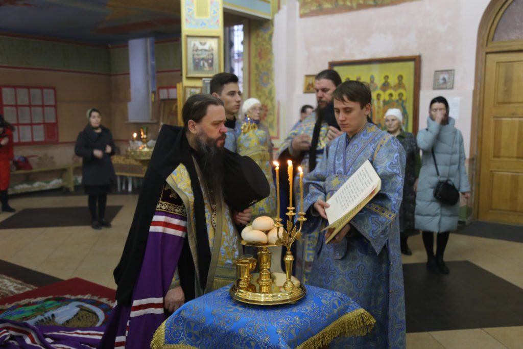 По заамвонной молитве было совершено славление, вознесена молитва ко Пресвятой Владычице нашей Богородице и Приснодеве Марии и пропето величание.