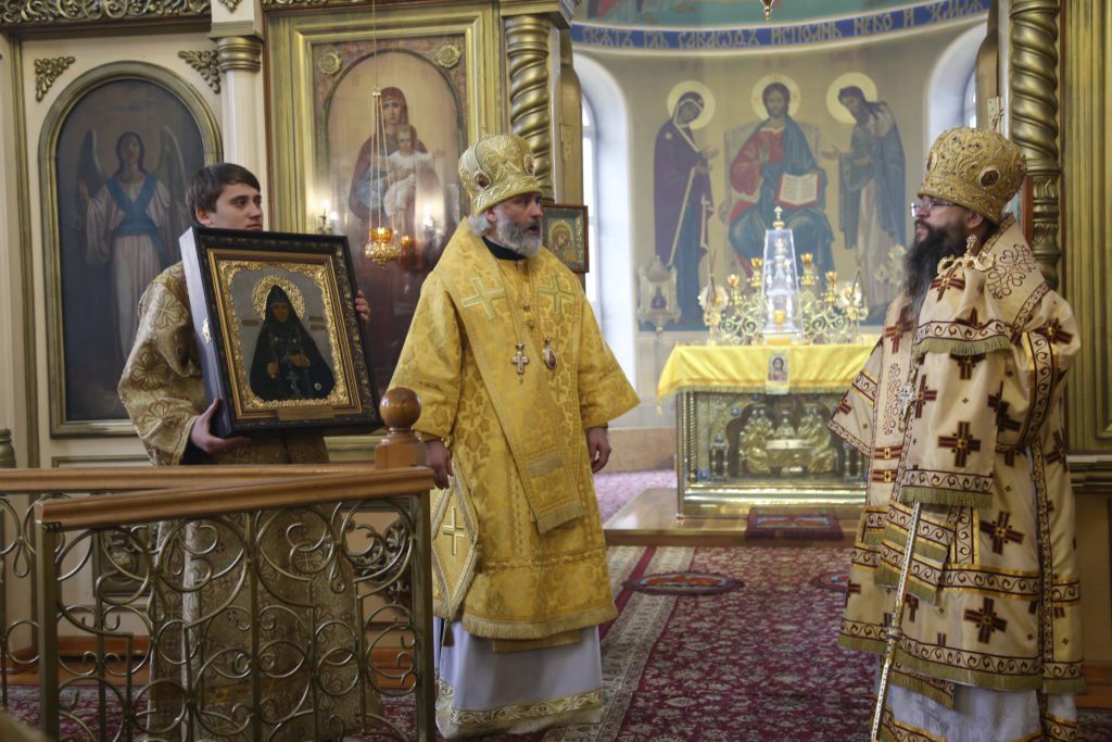 В свою очередь епископ Николай преподнес в дар Свято-Успенскому собору икону с частицей мощей святой преподобной Зосимы Еннатской.