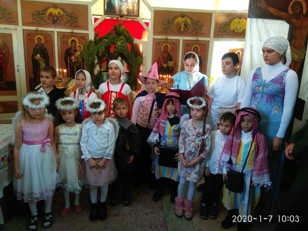 Ребята исполнили рождественские колядки и прочитали стихи, после чего настоятель храма иерей Григорий Фомин вручил им праздничные подарки.