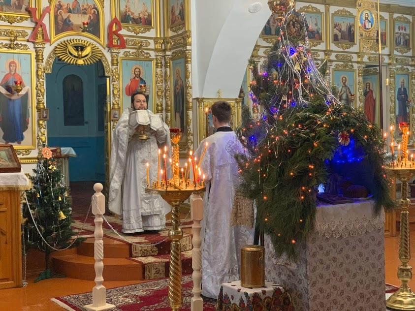 По прочтении Евангелия отец Николай зачитал Рождественское послание Святейшего Патриарха Московского и всея Руси Кирилла архипастырям, пастырям, монашествующим и всем верным чадам Русской Православной Церкви.