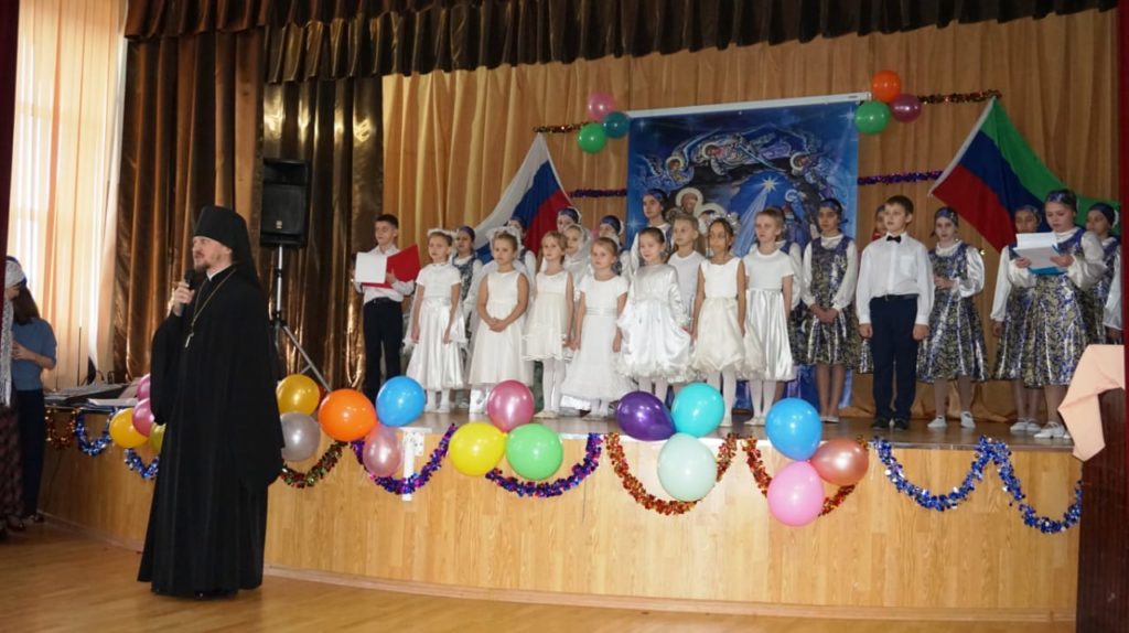 Перед началом мероприятия ребята из воскресной школы исполнили тропарь праздника Рождества Христова.