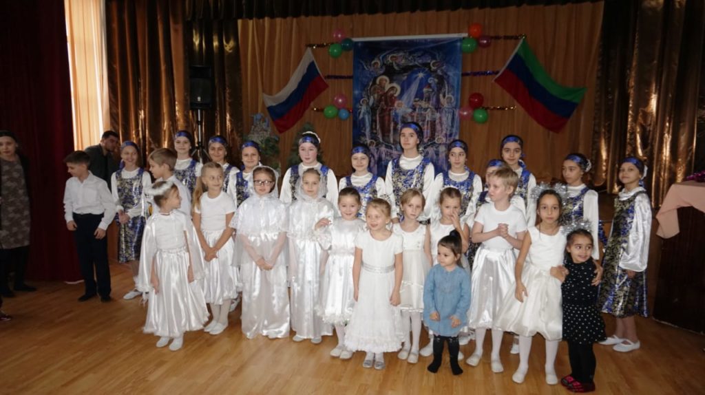 Для воспитанников воскресной школы при храме Казанской иконы Божией Матери в г. Каспийске (Республика Дагестан) стало доброй традицией праздновать светлый праздник Рождества Христова вместе с ребятами из Коррекционного детского дома.