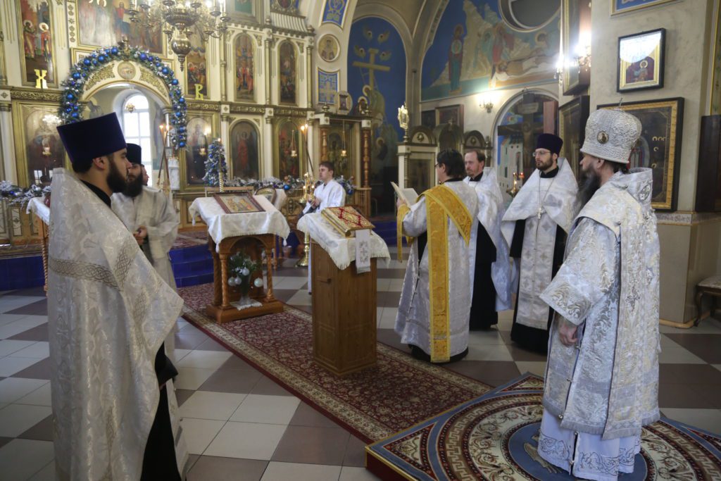 Его Высокопреосвященству сослужили клирики Свято-Успенского кафедрального собора.
