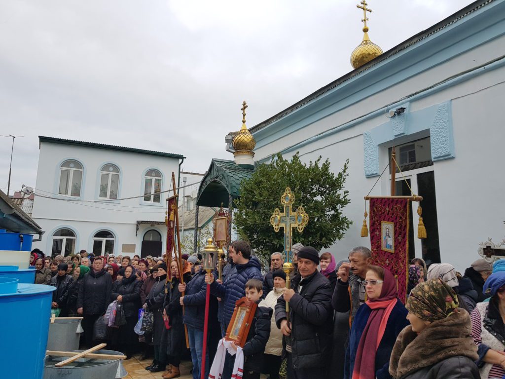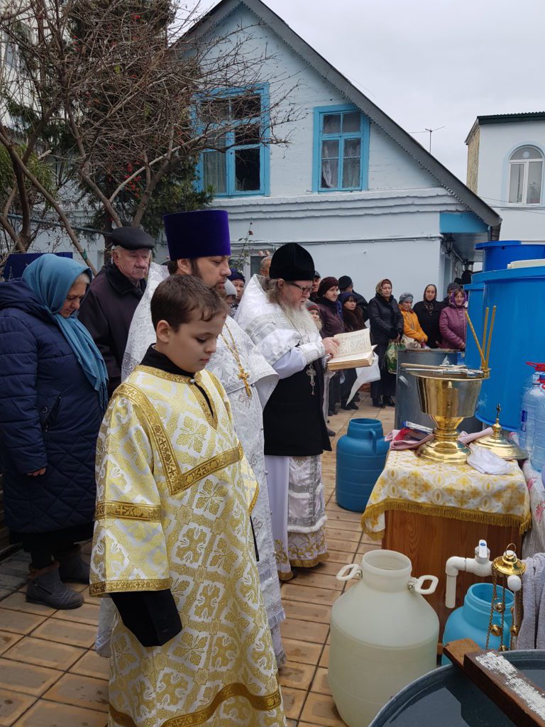 В навечерие праздника Святого Богоявления в храме в честь Покрова Пресвятой Богородицы в г. Дербенте (Республика Дагестан) духовник епархии, настоятель Покровского храма протоиерей Николай Котельников в сослужении штатного клирика иерея Михаила Лобова совершил последование уставных богослужений, после чего был совершен чин великого освящения воды.
