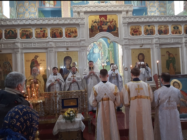 В этот день Божественную литургию в соборе святого великомученика Георгия Победоносца в г. Кизляре по благословению архиепископа Махачкалинского и Грозненского Варлаама возглавил секретарь Махачкалинской епархии иерей Виталий Тарасов в сослужении духовенства епархии.