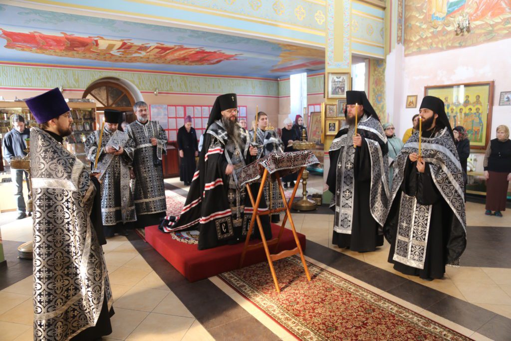 По прочтении канона владыка Варлаам, преклонив колени, вознес молитву на начало Святой Четыредесятницы.
