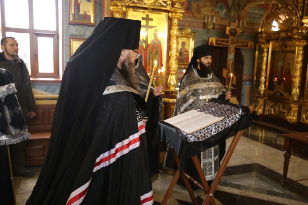 По прочтении канона владыка Варлаам, преклонив колени, вознес молитву на начало Святой Четыредесятницы.